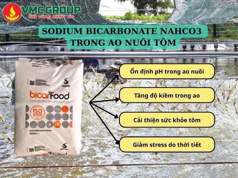– Sodium bicarbonate NaHCO3 giúp tăng cường điện giải, bổ sung các khoáng chất giúp tôm cứng vỏ.